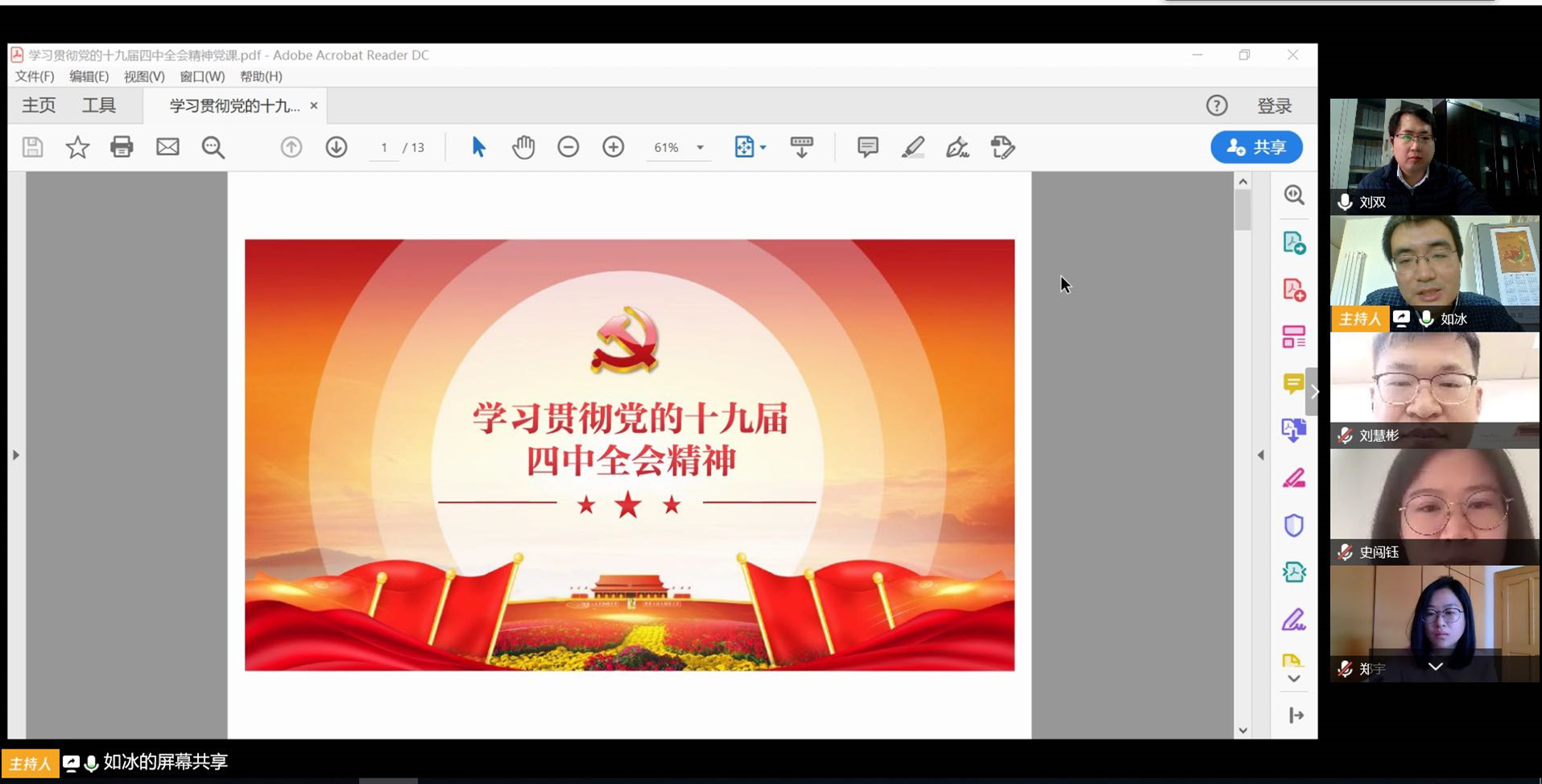 3月12至3月13日,北京建機院黨委領導班子成員以“學習貫徹落實十九屆四中全會精神,積極穩(wěn)妥有序推進北京建機院混改工作”為主題,圍繞“黨的十九屆四中全會召開背景、意義以及全會提出的堅持和完善中國特色社會主義制度、推進國家治理體系和治理能力現(xiàn)代化的總體要求、總體目標、重點任務和重大舉措”等內(nèi)容,采用視頻會形式,深入各基層黨組織開展了宣講,推動全會精神學習下基層,營造了濃厚的學習貫徹氛圍。