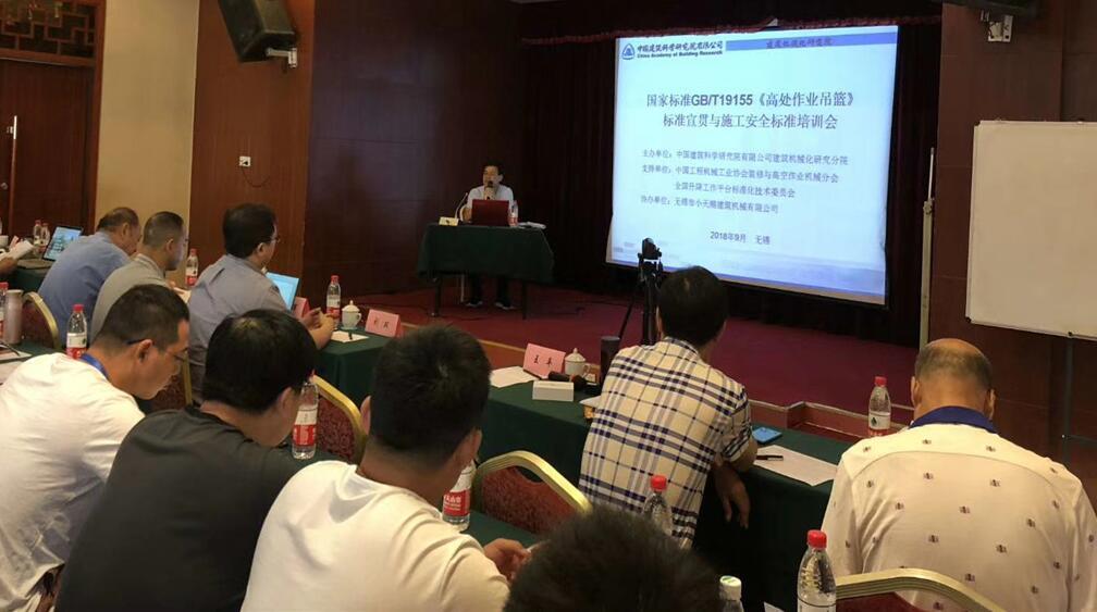 由GB/T19155-2017標(biāo)準(zhǔn)主編單位中國建筑科學(xué)研究院有限公司建筑機(jī)械化研究分院舉辦的第一期GB/T19155-2017《高處作業(yè)吊籃》標(biāo)準(zhǔn)宣貫學(xué)習(xí)與施工安全標(biāo)準(zhǔn)培訓(xùn)會于2018年9月9日在江蘇無錫大飯店圓滿結(jié)束,來自全國100多家單位的人員參加了學(xué)習(xí)。