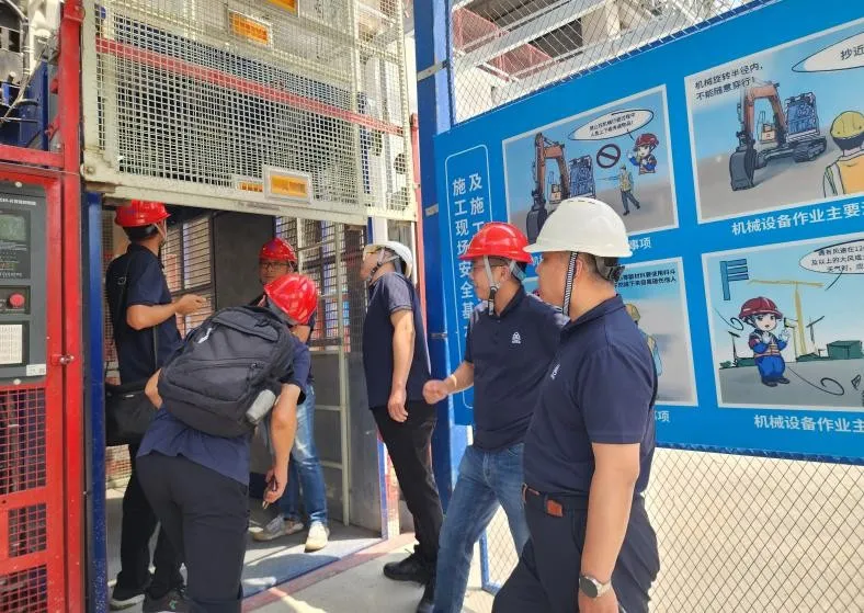 為進(jìn)一步深入落實(shí)《公司安全生產(chǎn)治本攻堅(jiān)三年行動(dòng)實(shí)施方案(2024—2026年)》,夯實(shí)安全生產(chǎn)工作基礎(chǔ), 6月27日,北京建機(jī)院黨委書(shū)記、董事長(zhǎng)兼總經(jīng)理宮劍飛帶隊(duì)調(diào)研天津環(huán)湖醫(yī)院項(xiàng)目智能施工升降機(jī)使用情況并檢查安全生產(chǎn)工作。北京建機(jī)院黨委委員、副總經(jīng)理、分管安全負(fù)責(zé)人王春琢參加調(diào)研檢查。